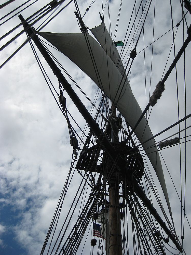 Climbing the rigging....apparently those sails don't come with a remote |